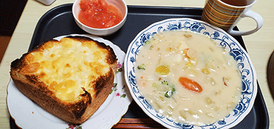基本手作りの食事を考えています。たまにはデリバリーを頼んでウッドデッキで食べています。